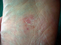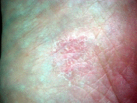 中央部分の赤い斑点が水虫です。 |